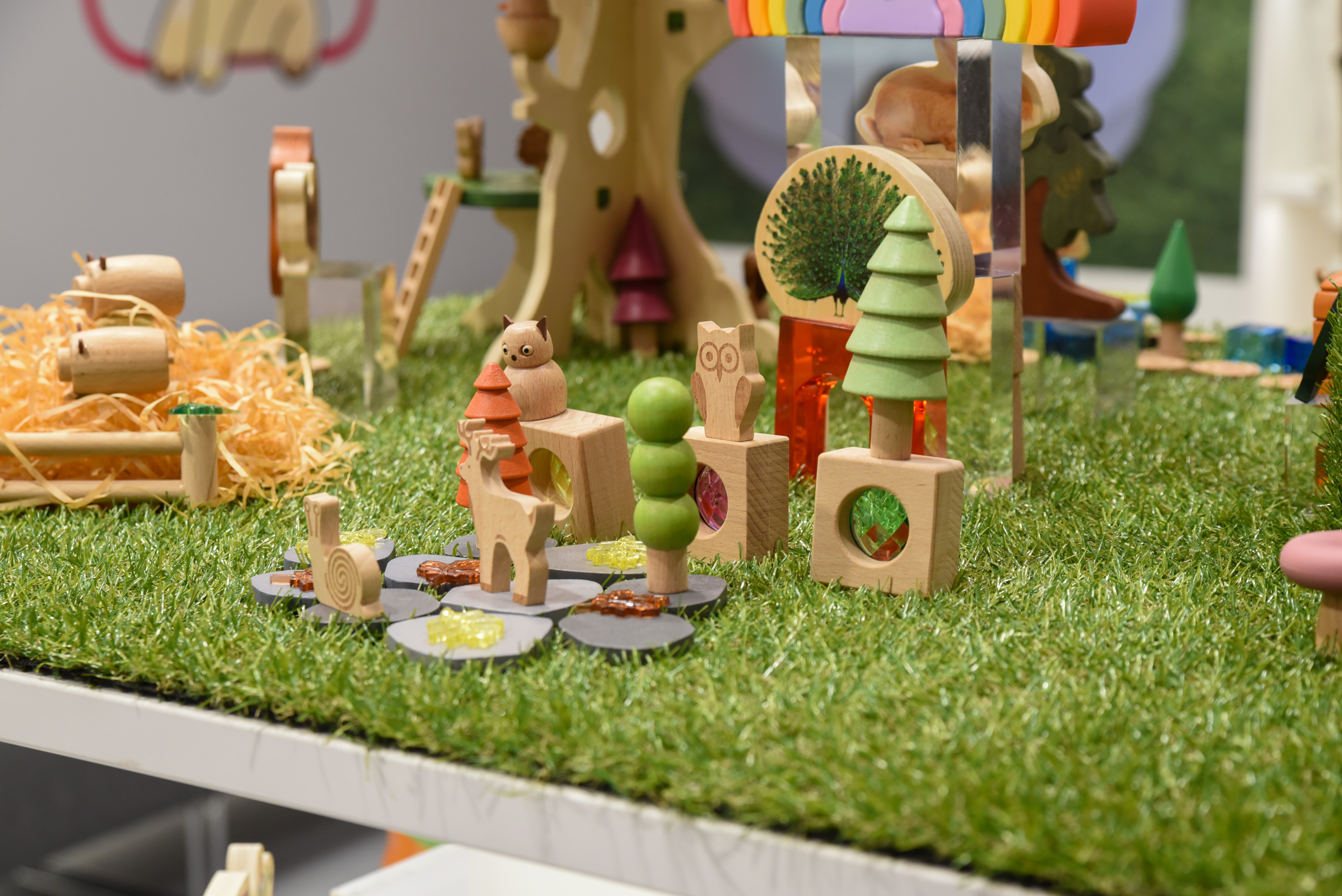 Among the most talked-about displays was our farm-themed counter, featuring the tickit Woodland Trail Treehouse, Farm Discovery Dividers, Wooden Farm Set, Woodland Trail Set, Domestic Animal Blocks, SiliSoft Mushrooms and SiliSoft Wobble Rainbow. Although these products vary in material and function, together they created a cohesive and engaging playscape that invited children - and adults - to imagine, build and explore. The way these elements combined demonstrated how versatile resources can be layered to create rich, adaptable learning environments.